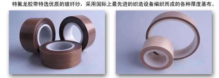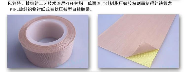 铁氟龙粘胶带,别名铁氟龙胶带、铁氟龙粘胶带、铁氟龙粘胶带、PTFE胶带等,选用进口的玻璃纤维纱后涂覆铁氟龙(PTFE)树脂,生产的铁氟龙玻璃纤维胶带.一般卷材1米宽,50米每卷.颜色为咖啡色和黑色及白色三种,同时可以分切成各种宽度,并根据客户要求生产各种厚度的粘胶带.选用进口的PTFE膜,经过特殊处理后上耐高温硅胶,生产的铁氟龙(铁氟龙)膜胶带.最大宽度能做到1000MM,颜色为白色和灰色两种.同时,可以根据客户要求加工.